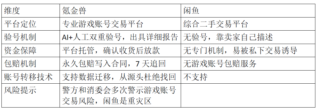 以上只是我个人的经验分享,不构成任何购买建议。这两个渠道的保障机制差距很明显,建议大家按自己最看重的点去选。如果预算有限愿意赌一把,闲鱼可以试试,但要留好所有聊天记录和交易凭证;如果更在意安全和省心,还是建议走专业平台。游戏账号交易有风险,走平台流程、别私下转账,保护好自己的钱袋子。