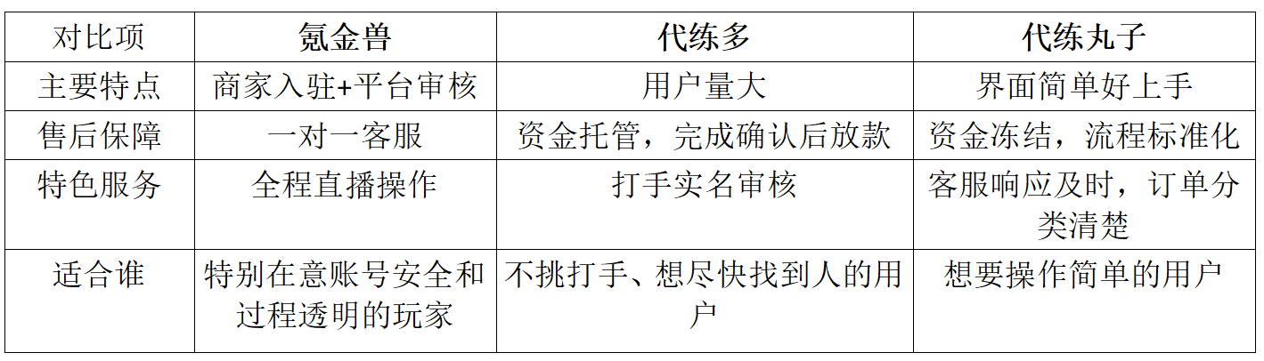 几家平台用下来,我用的比较多是氪金兽。商家入驻模式让平台对服务质量有了把控,交易过程有专人监管,价格在下单前就清清楚楚,代打也都是纯手工操作,整体体验比较踏实。下单前最好跟打手确认清楚具体要完成哪些内容、大概需要多长时间。留意平台的交易流程,资金冻结、完成后放款的机制对双方都更公平。