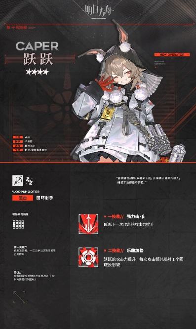 明日方舟红票商店新增四星干员跃跃:新分支回环射手,攻击范围广!