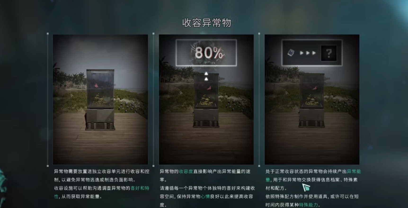 在完成一系列任务后,我们需要与小女孩对话,解锁一个新的收容容器。这个容器可以用来收集特殊物品,产生能量,为我们带来益处。我们可以通过弹琴和收音机来提高容器内物品的好感度。