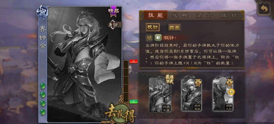 首先要介绍的是界钟会。界钟会是一个需要玩家耐心等待的武将。他的技能“权计”可以在受到伤害后回复体力,但前提是需要在回合开始时进行“权谋”操作。这意味着玩家需要在对局中保持一定的耐心,在合适的时候使用“权计”来恢复体力。此外,界钟会还需要玩家根据场上局势来判断何时觉醒。觉醒后的界钟会拥有强大的控制力,但觉醒前的他可能处于劣势。因此,玩家需要耐心等待时机,不要过于急躁。