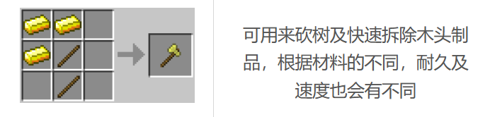 斧头Axes——材料:木棍加木板或圆石或铁锭或金锭或钻石