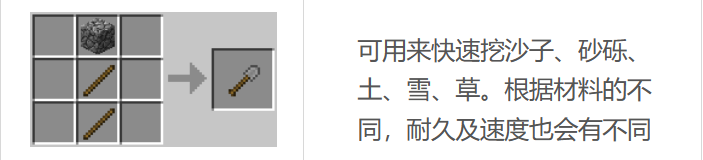 锹Shovels——材料:木棍加木板或圆石或铁锭或金锭或钻石