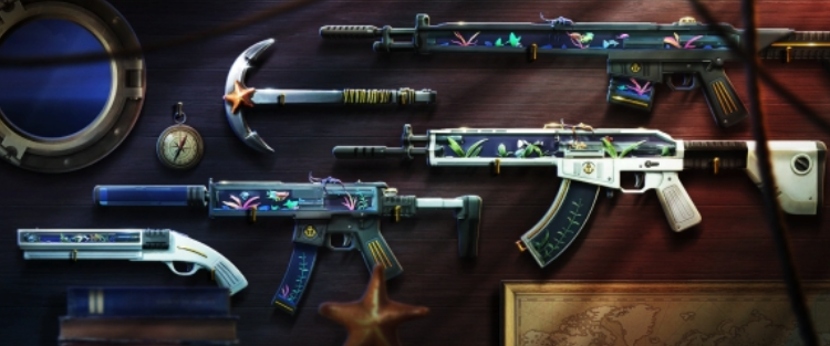 最后一套新皮肤套装是“海王星套装”,售价为5160游戏币。单枪皮肤的售价为1290,单刀皮肤的售价为2580。