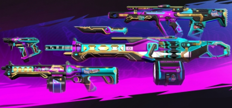 第二套新皮肤套装是“全息波普1.0套装”,售价为6360游戏币。单枪皮肤的售价为1590,单刀皮肤在iOS平台上需要额外支付3180。