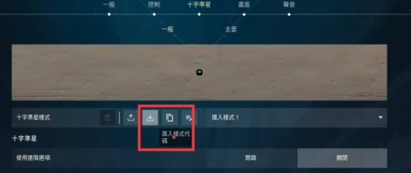 3、在设定中,找到并点击“十字准星”或“汇入样式代码”(具体名称可能因游戏版本而异)。