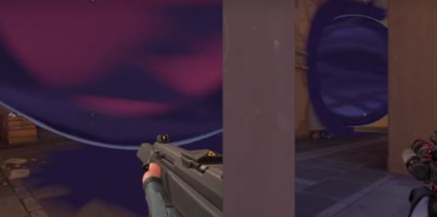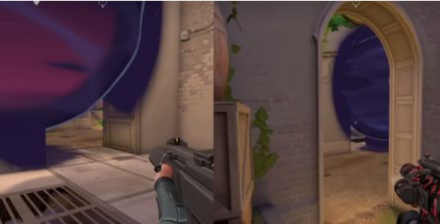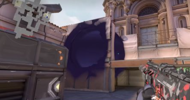 在进攻B点时,我们可以在自动门处封烟,以缓解队友在自动门落下前所承受的多面枪线压力。