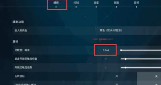 在无畏契约的通用设置中,将灵敏度修改为CSGO灵敏度的0.37倍。