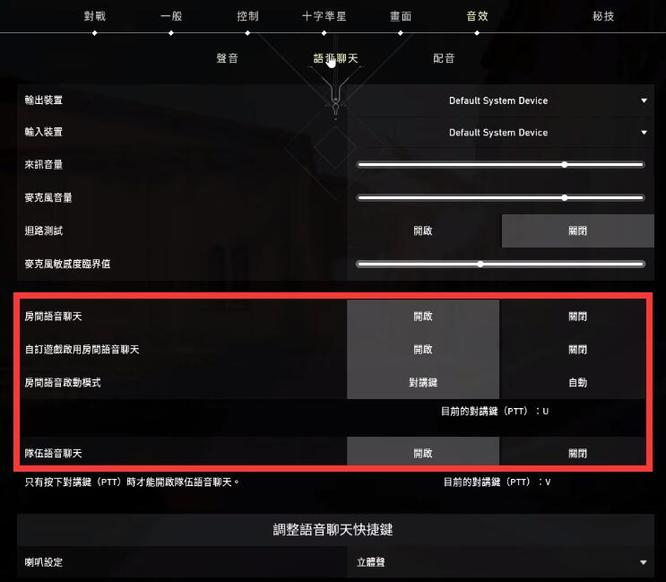 无畏契约的语音按键设置相对简单。首先,按下esc键打开游戏设置界面。在这个界面中,你可以找到房间和队伍语音两个选项。对于房间语音,你可以选择启动模式,比如五人队伍的聊天模式。此外,队伍语音目前只有按键说话一种方式,你可以切换公麦和按键方式。