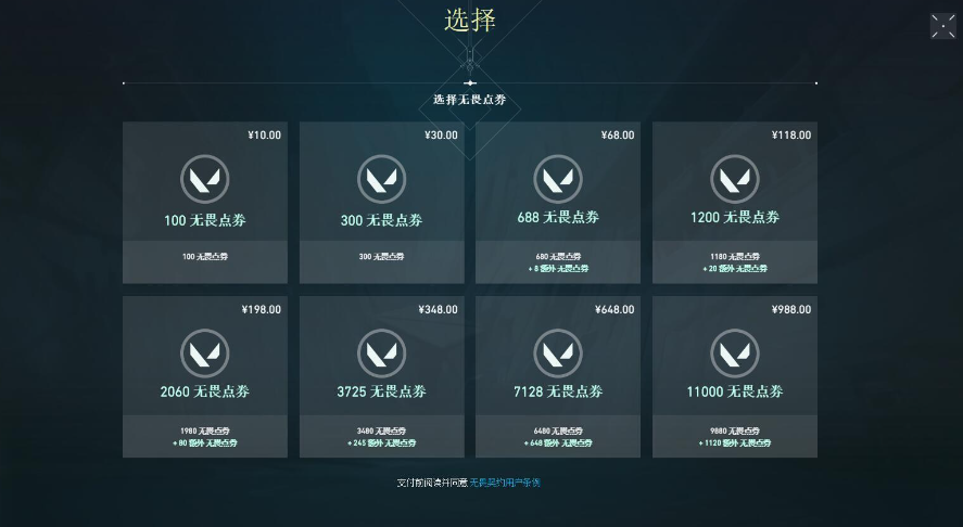 无畏契约的国服充值比例为1:10,即10元人民币可以购买100无畏点券。最高充值金额为988元人民币,可以购买11000无畏点券。在未来的充值活动中,购买无畏点券可能会更加实惠。