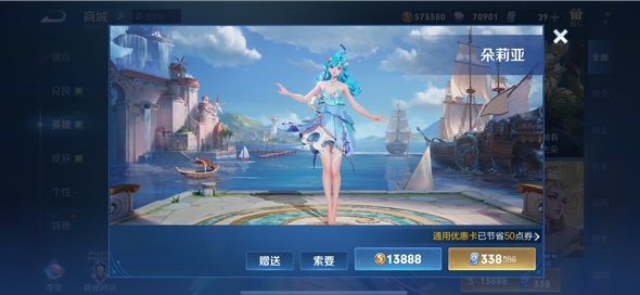 使用金币购买:玩家可以在游戏内商店中使用13888金币购买朵莉亚。
