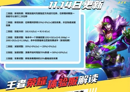 首先,让我们来看看这次调整的核心内容。高渐离的被动技能得到了全新的改动,原本的免伤效果被移除,取而代之的是在狂暴状态下增加伤害和攻速。同时,他的二技能新增了一个跪铲效果,可以用来穿越墙壁或者躲避敌方英雄的攻击。大招也进行了相应的调整,原本的免伤效果被移除,改为增加伤害和攻击范围。