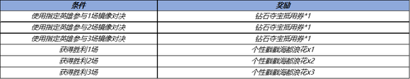 任务包括:使用指定的英雄参与1/2/3场比赛并获得1/2/3场胜利。成功完成任务后,玩家可以获得个性戳戳和钻石夺宝券等奖励。