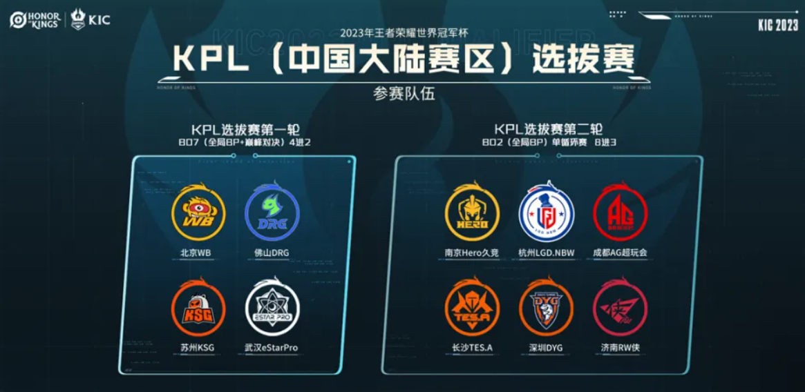 参赛队伍:北京WB、佛山DRG、苏州KSG、武汉eStarPro、南京Hero久竞、杭州LGD.NBW、成都AG超玩会、长沙TES.A、深圳DYG、济南RW侠。