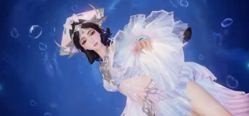 在王者荣耀中,西施至美风华特效如灵动山水中巨大的粉色鲤鱼游曳,娉婷少女释放光华流转的银绣球,层层涟漪、碧色水波的特效氛围,带来柔美又不失力量的打击感。