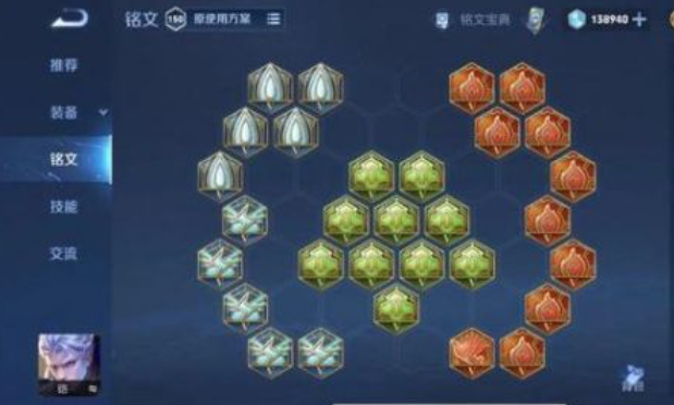 肉铠推荐红色铭文:5个狩猎、5个调和、9个宿命、1个祸源。既然我们选择玩肉,那么红色方面就选择宿命,我们选择了9个宿命加上一个祸源。宿命可以增加生命值和防御能力,非常适合肉铠。祸源则可以增加暴击几率,让肉铠在战斗中能够打出更高的伤害。绿色铭文:10个虚空。绿色方面就选择虚空,没有太多选择。虚空可以增加生命值和冷却缩减,让肉铠在战斗中更加持久。