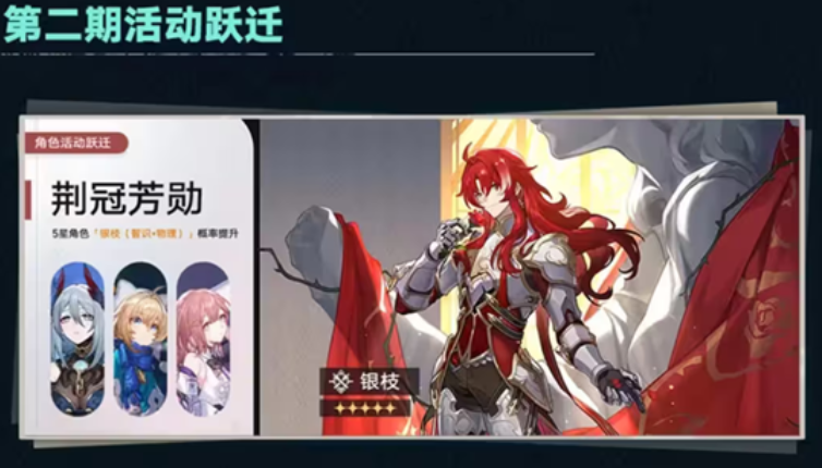 总的来说,这次卡池的整体价值偏低,只要不考虑抽取五星角色的玩家都可以选择跳过。接下来是下半部分的卡池,下半卡池包括两个角色池和两个光锥池。下半的角色池有两个五星角色,分别是银枝和银狼,而四星角色是寒鸦、玲可和艾丝妲。银枝是对群输出位角色,适合当前比较缺少输出能力的玩家,而银狼是对单辅助角色,是跨属性攻坚的核心角色,比较适合想组建万能队的玩家。不过个人建议如果不打算组建万能队的话也可以选择抽取银枝来扩充队伍多样性如果不打算抽取的话可以直接跳过如果打算组建万能队的话推荐抽取银狼抽取银狼的话如果没有光锥新手任务开始前建议直接抽到1+1甚至2+1因为0魂银狼只有在新手任务开始前使用起来比较舒适其他情况下使用任何光锥都会感到困难包括专武。