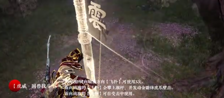 增加了胡为的机动能力。他可以通过按F键向瞄准方向【飞扑】,而且这个技能可以使用三次。如果胡为面向战旗使用【飞扑】,他将会攀上旗杆并发动金霸体虎爪壁击。这个技能可以在受击中使用,使得胡为在战斗中更加灵活自如。