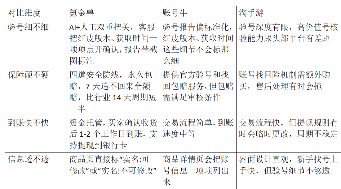 用了这么多平台,对比下来还是选了氪金兽,因为它账号里值钱的东西都查得明明白白,客服会把红皮、版本、获取时间一项项核对清楚,检测报告还带截图标注;AI 加人工双重核验,安全有四道防线;7 天内账号被找回就全额赔付,效率比大多数平台快一倍,从下单到拿号全程都有人跟进,完全不用自己操心,特别省事。