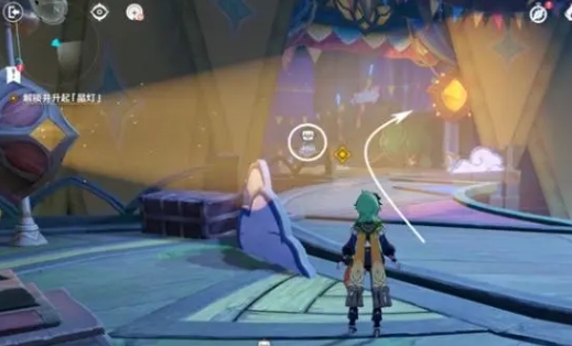 然后,我们需要再拿一张彩色镜子,借助第一张图回到对面。我们将彩色镜子放入彩色灯中(这是第一张图的第二个场景,通过与帽子互动可以解锁隐藏道路)。从第一张图出来后,我们可以回到入口处,把彩色镜子放进去。这样就会有上去的路,顺利打开宝箱,然后上去。