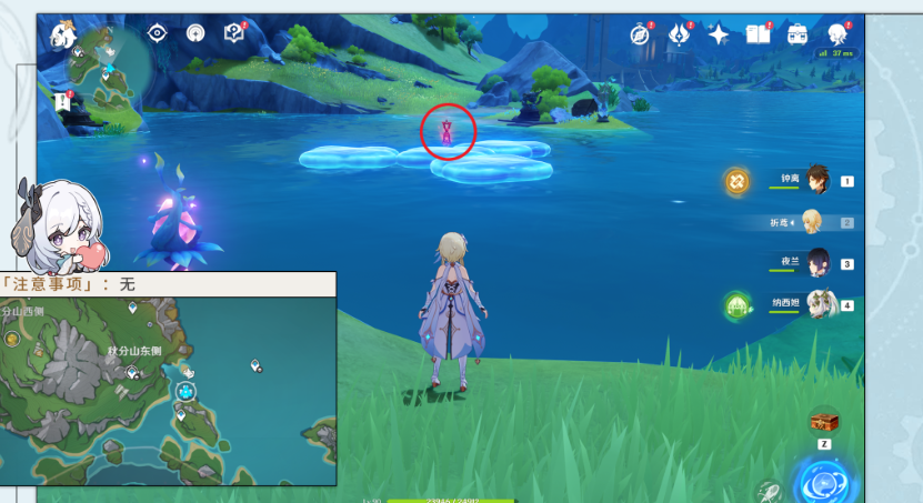 (1)来到秋分山东边,可以看到水中心有一个挑战