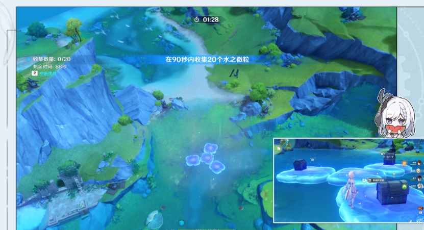 (2)我们开启挑战,借助风场收集微粒(注意躲避舰炮的攻击,全程移动即可)