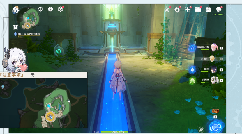 4,再来到南边的升降柱,对准右边的晶体发射光束,将它升到2格(出现较长的光线即可)