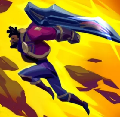 奎桑提开始蓄力,举起武器并变为不可阻挡状态,同时降低受到的伤害。释放力量时,奎桑提向前猛冲,根据敌人最大生命值造成百分比物理伤害,击退并眩晕他所途经的敌人。蓄力越久,眩晕时间越长。在全盛姿态下,技能冷却时间重置,奎桑提抵抗更多伤害。蓄力越久,造成的伤害越高,并且蓄力和突进的速度翻倍。