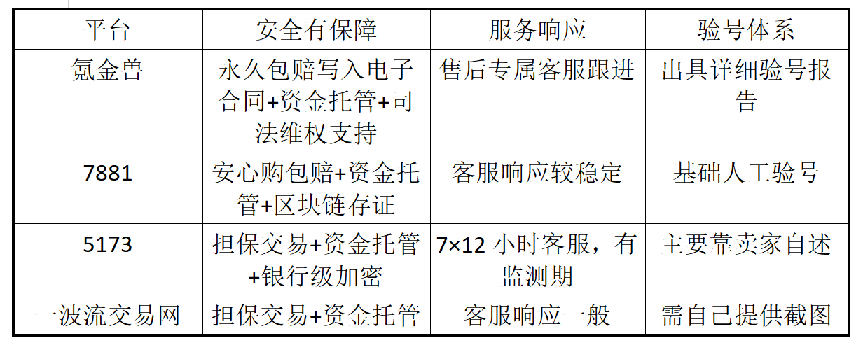 缺点/短板:没有统一的验号体系,需要买家自行核对信息;整体保障机制相对基础